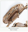- Design Clássico: Estilo europeu com acabamento em alumínio e vidro floral, disponível nas cores preto e bronze.